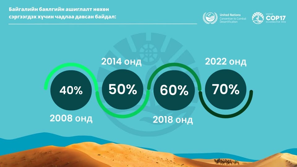 2008 оны байдлаар байгалийн нөөцийг нэг жилд нөхөн сэргээгдэх хэмжээний нөөцөөс нь 40%-иар хэтрүүлэн ашиглаж байсан бол 2014 онд энэ тоо 50, 2018 онд 60, 2022 онд 70% болж, үржих хүрдээр өсөж байна. Угтаа бол өдөр болгон бид эх дэлхийнхээ нөхөн сэргээгдэх хэм хэмжээнээс ийм хувиар илүү ихийг авч, илүү ихийг ууж идэж, устгаж хороож, хордуулж бохирдуулж байдаг байна.