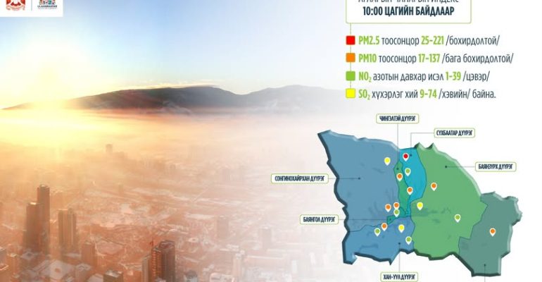 Тодорхой хэлбэл, Улаанбаатар хотын тоосжилтын хэмжээ олон улсад зөвшөөрөгдөх дээд хязгаараас илүү, бүр 2-3 дахин давсан үзүүлэлттэй. УУР АМЬСГАЛЫН ӨӨРЧЛӨЛТТЭЙ холбоотойгоор шороон шуурга дэгдэх давтамж өнгөрсөн хагас зуунд дөрөв дахин нэмэгджээ. Та яг одоо хотыг бүрхсэн утаа, мананг харж байна. Нүүрс, түлшний утаанаас гадна тоосонцорын манан нийслэлийг ийнхүү битүү бүрхсэн дүр зургийг жилийн аль ч улиралд хардаг болсон.